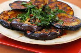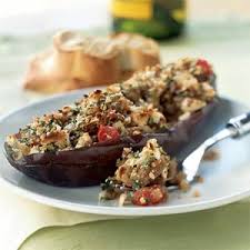 about 2 tablespoons of spinach mixture in the center of each eggplant